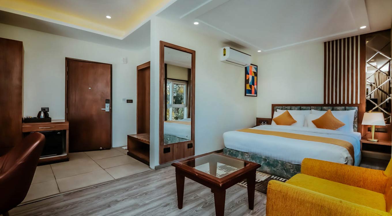 Experience luxurious comfort in the Club Stellar Rooms, boasting an expansive 320 sq.ft of space and breath-taking valley views. Central air-conditioning keeps temperatures comfortable all year-round while tea and coffee makers add to your enjoyment. Safety is of utmost concern: fully automatic doors as well as in-room safes add to this feeling of serenity in Mussoorie.